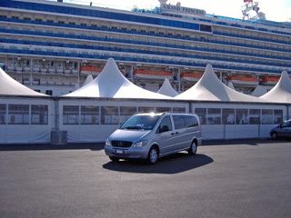 Our drivers are able to pickup you under the ship, just outside the security control area (the tent), whatever your cruise ship is: Celebrity, Royal Caribbean, Norwegian, MSC, Costa,…ALL.